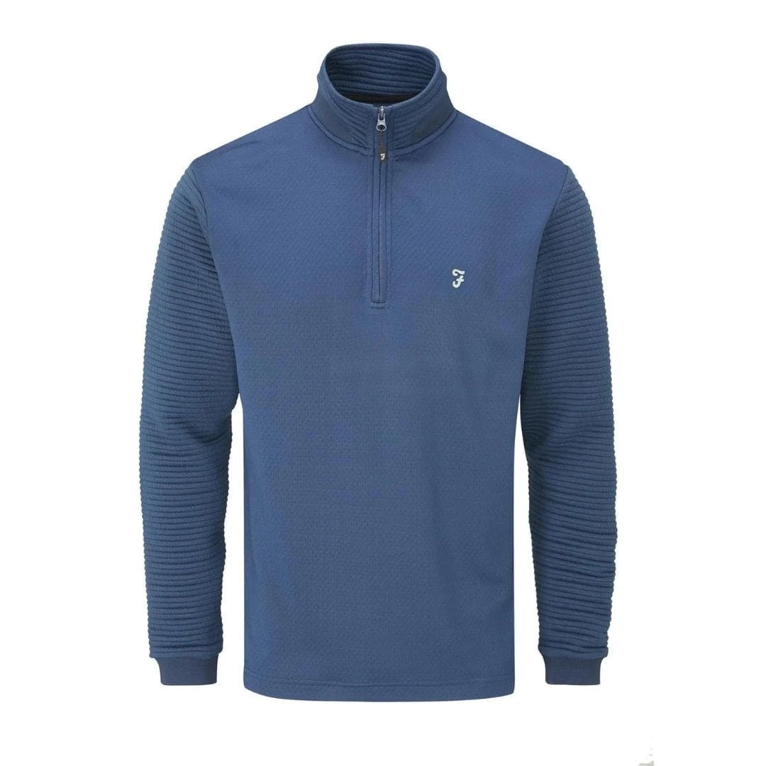 The Farah Warren 1/4 zip will be the ideal garment to wear on those cooler mornings and evenings out and about the golf course. A technical jacquard knit body and rib sleeves give a great look whilst offering maximum heat retention through the thermal properties. It is soft to the touch and highly breathable, making it a great choice for all-year wear.