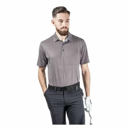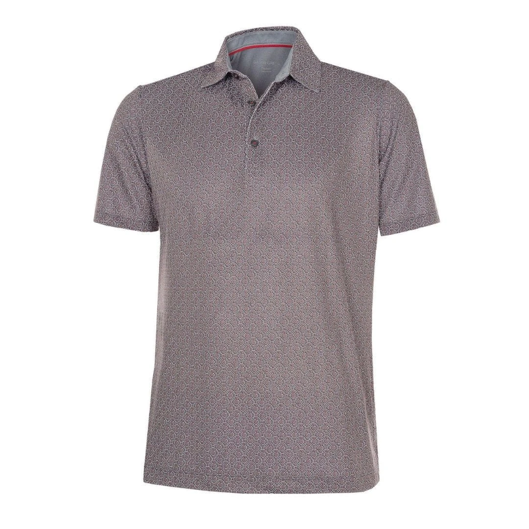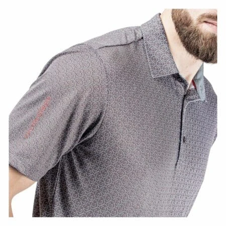 This fully printed polo shirt has an allover G logo chain pattern and is made from Galvin Green’s high tech VENTIL8™ PLUS fabric. Extremely breathable and quick dry, this material is ideal for golf shirts, ensuring you stay cool and dry while you play.