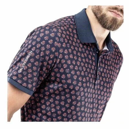 Murphy is a breathable short sleeve polo shirt with an allover floral print and contrasting collar, placket, and cuffs. Galvin Green’s VENTIL8™ PLUS golf shirt range is a high tech collection of performance driven shirts designed to be functional and stylish. The Murphy shirt is made from an extremely breathable fabric that is quick dry, ensuring you are comfortable on the golf course when it’s hot outside.