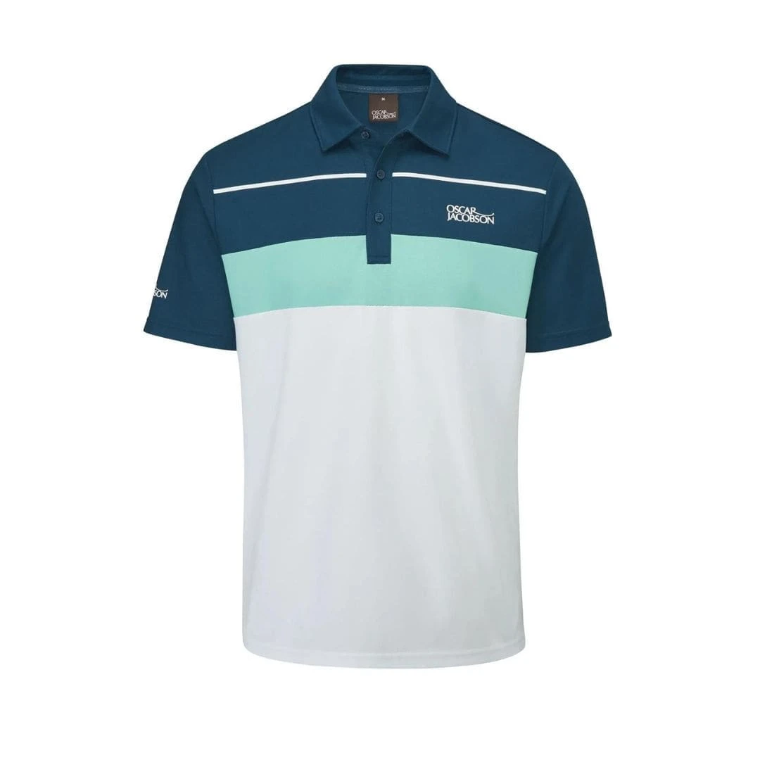 The colour blocked DODMAN polo shirt is a performance polo with strong complementary colours. The durable lightweight four way stretch fabrication offers unrivalled freedom of movement and exceptional breathability. The established Oscar Jacobson contemporary relaxed fit, soft handle and construction of the bespoke fabric offers ultimate comfort and enhanced playing experience. The self fabric collar and open cuffs, three button placket, contrast chest stripes and side hem vents further enhance the brands ultimate commitment to detail and quality.