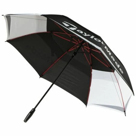 Stay dry and battle through the elements with TaylorMade’s Single Canopy Umbrella. Designed specifically for golfers, the 100% nylon canopy and ergonomic sport-grip handle make for a great accessory to keep you playing even in the wettest conditions.