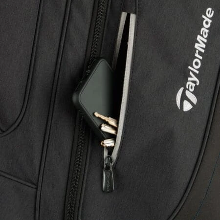 The TaylorMade Kalea Lanai golf cart bag features a 15 way top including a dedicated putter well, a total of six pockets including two large clothing pockets, velour lined valuables pocket, and multiple pockets for small essentials including golf balls, tees and a rangefinder. The base of this bag was constructed to fit onto a trolley and prevent sliding off and it will also stand upright while you set up your trolley. Top grab handles make this lightweight cart bag extremely easy to lift in and out of the car or onto a trolley or buggy and a rain hood will keep your clubs dry in rainy conditions. TaylorMade offer a 1 year warranty on this bag.