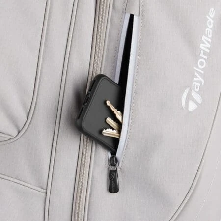The TaylorMade Kalea Lanai golf cart bag features a 15 way top including a dedicated putter well, a total of six pockets including two large clothing pockets, velour lined valuables pocket, and multiple pockets for small essentials including golf balls, tees and a rangefinder. The base of this bag was constructed to fit onto a trolley and prevent sliding off and it will also stand upright while you set up your trolley. Top grab handles make this lightweight cart bag extremely easy to lift in and out of the car or onto a trolley or buggy and a rain hood will keep your clubs dry in rainy conditions. TaylorMade offer a 1 year warranty on this bag.